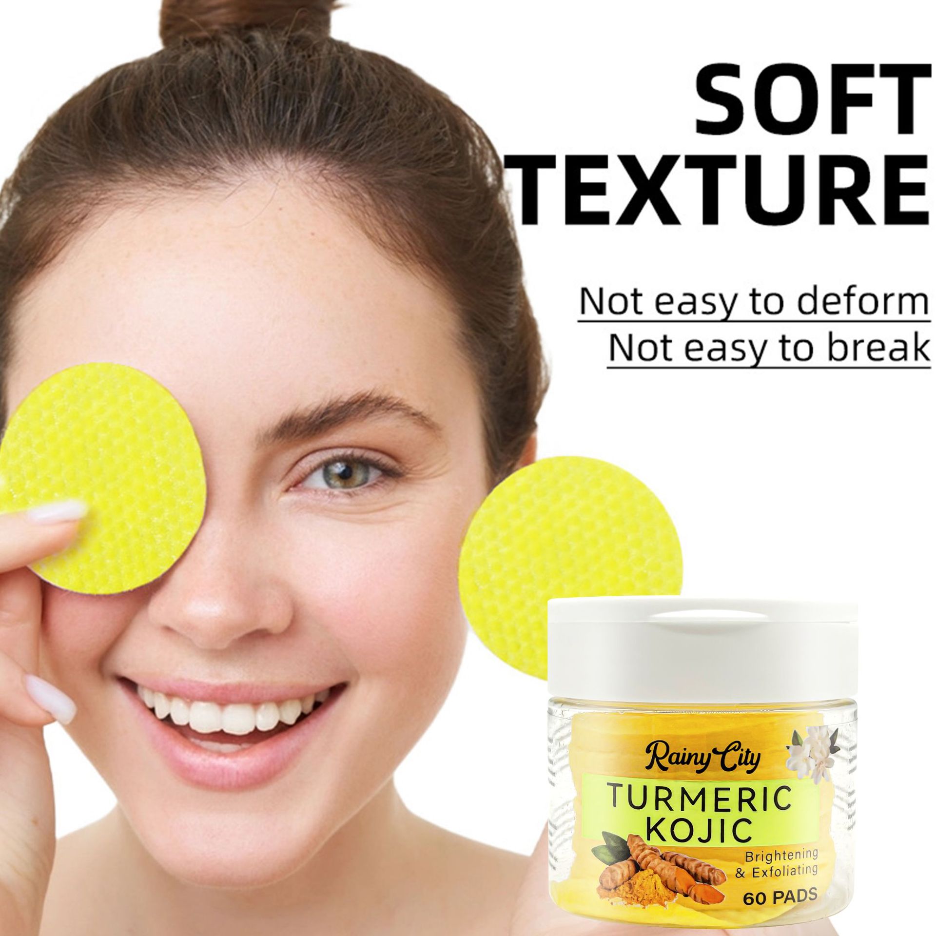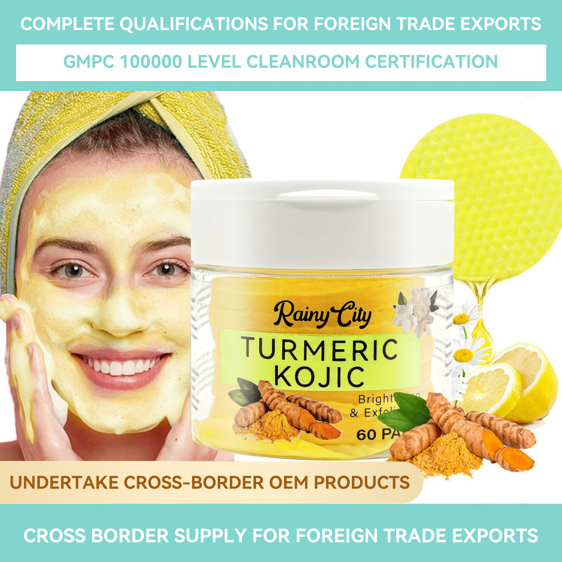 80 قطعة قطنية للوجه بعلامة تجارية خاصة، منظفة ومقشرة ومفتحة للبشرة، غنية بحمض الكوجيك والكركم