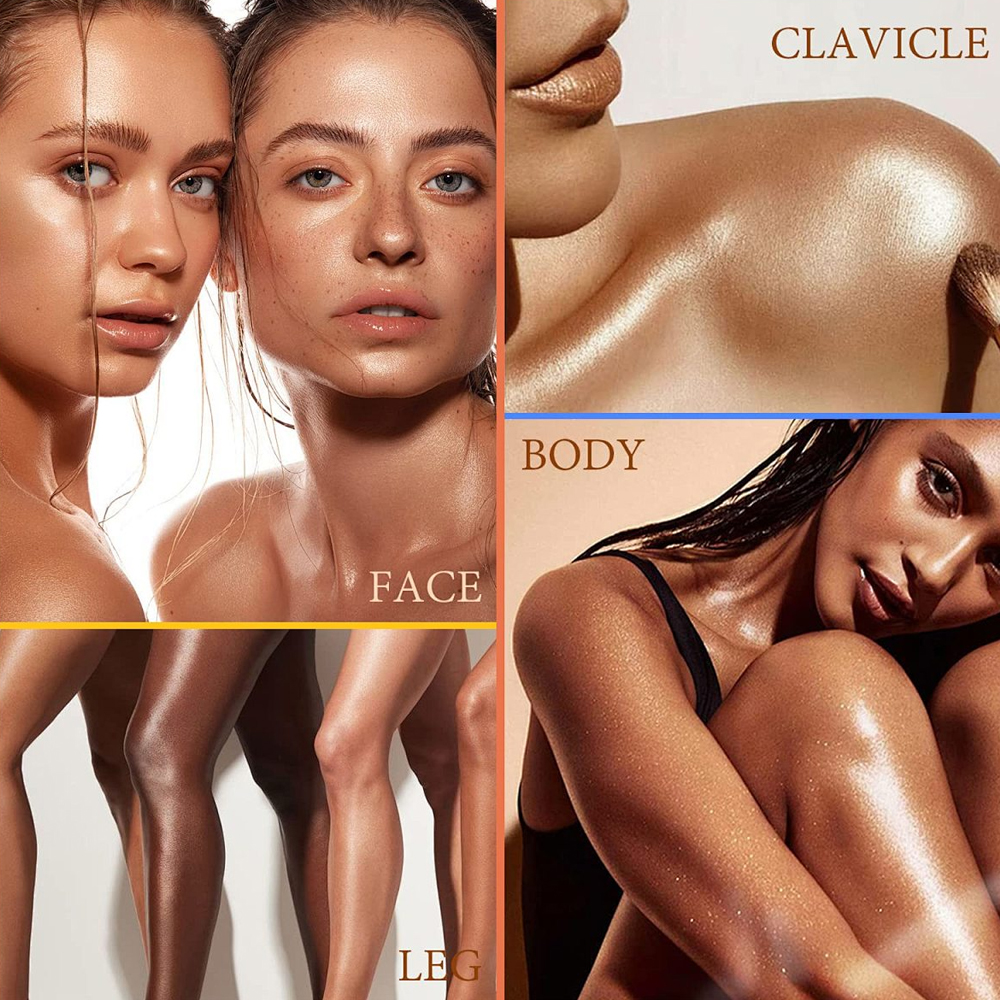 Suitable for all parts of the body arms,thighs,shoulders,clavicle does it give off luster catch your eyes.