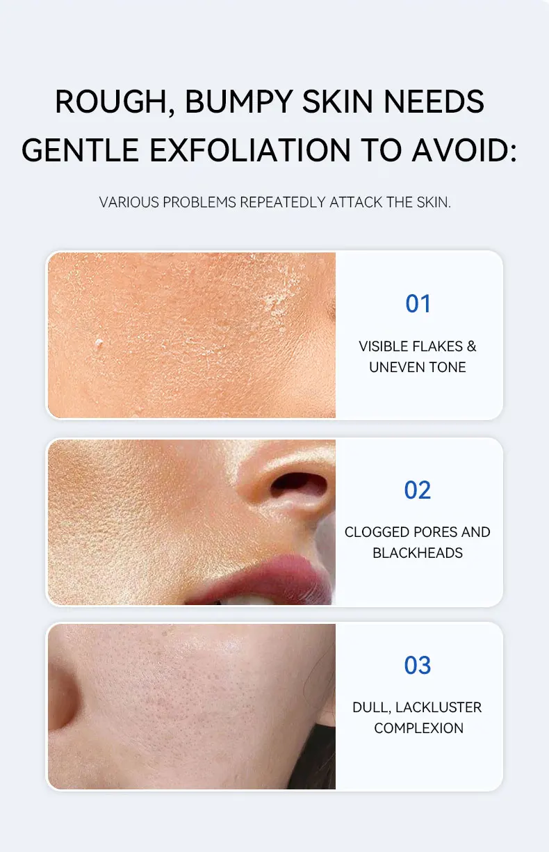ROUGH, BUMPY SKIN NEEDSGENTLE EXFOLIATION TO AVOID:VARIOUS PROBLEMS REPEATEDLY ATTACK THE SKIN.